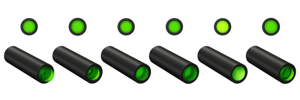With the NGI (Next Generation Inserts), the trigalight is installed in a temperature- and solvent-resistant polymer sleeve protected by sapphire glass. The colouring of the sleeve appears as a ring when installed and offers excellent visibility during the day. This robust insert design allows quick direct assembly into iron sights.